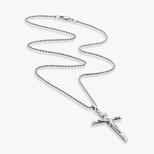 Crucifix Cross Pendant Necklace in Sterling Silver, Small