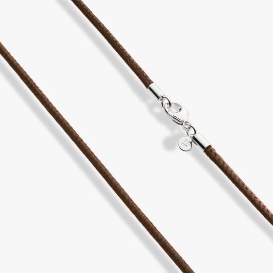 Genuine Brown Leather Cord Necklace with Sterling Silver Clasp, 2mm