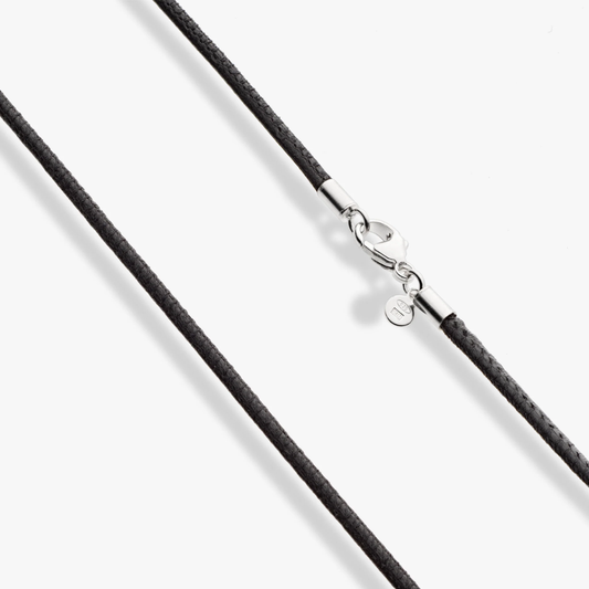 Genuine Black Leather Cord Necklace with Sterling Silver Clasp, 2mm