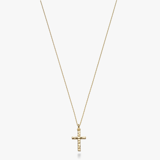 Hammered Cross Pendant Necklace in 18K Gold Over Sterling Silver
