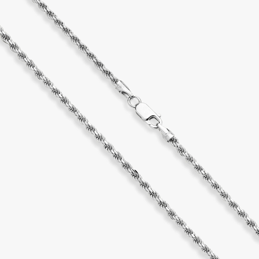 Round Box Chain Necklace in Rhodium Plated Sterling Silver, 2mm