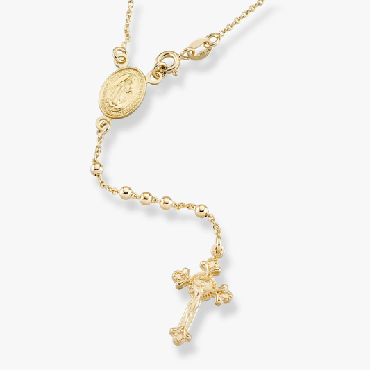 Rosary Beaded Cross Y Necklace in 18K Gold Over Sterling Silver
