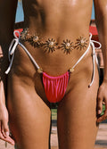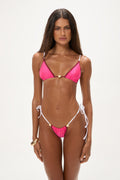 Step into summer with the Candice Bottoms in Magenta Contrast. These Brazilian-style bottoms feature flattering side ties for a customisable fit, ensuring comfort and style for every body type. The Magenta mixed with Nairobi and White creates a playful yet sophisticated look, perfect for making a statement. Adorned with BB gold sun charm detailing, these bottoms add a touch of elegance to your swimwear ensemble. Ideal for beach days or poolside lounging, the Candice Bottoms are a must-have for those who want to stand out at the beach club!