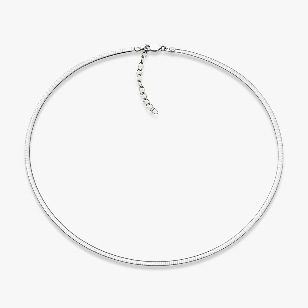 Elevate your everyday style with this Italian-made Omega chain in solid 925 sterling silver. Featuring a 2.5mm polished and domed design, this necklace sits smoothly along the neckline for a sleek, sophisticated look. Whether worn solo to enhance a simple outfit or paired with your favorite pendant or layered for a fashion-forward vibe, this timeless piece brings modern elegance to any occasion.