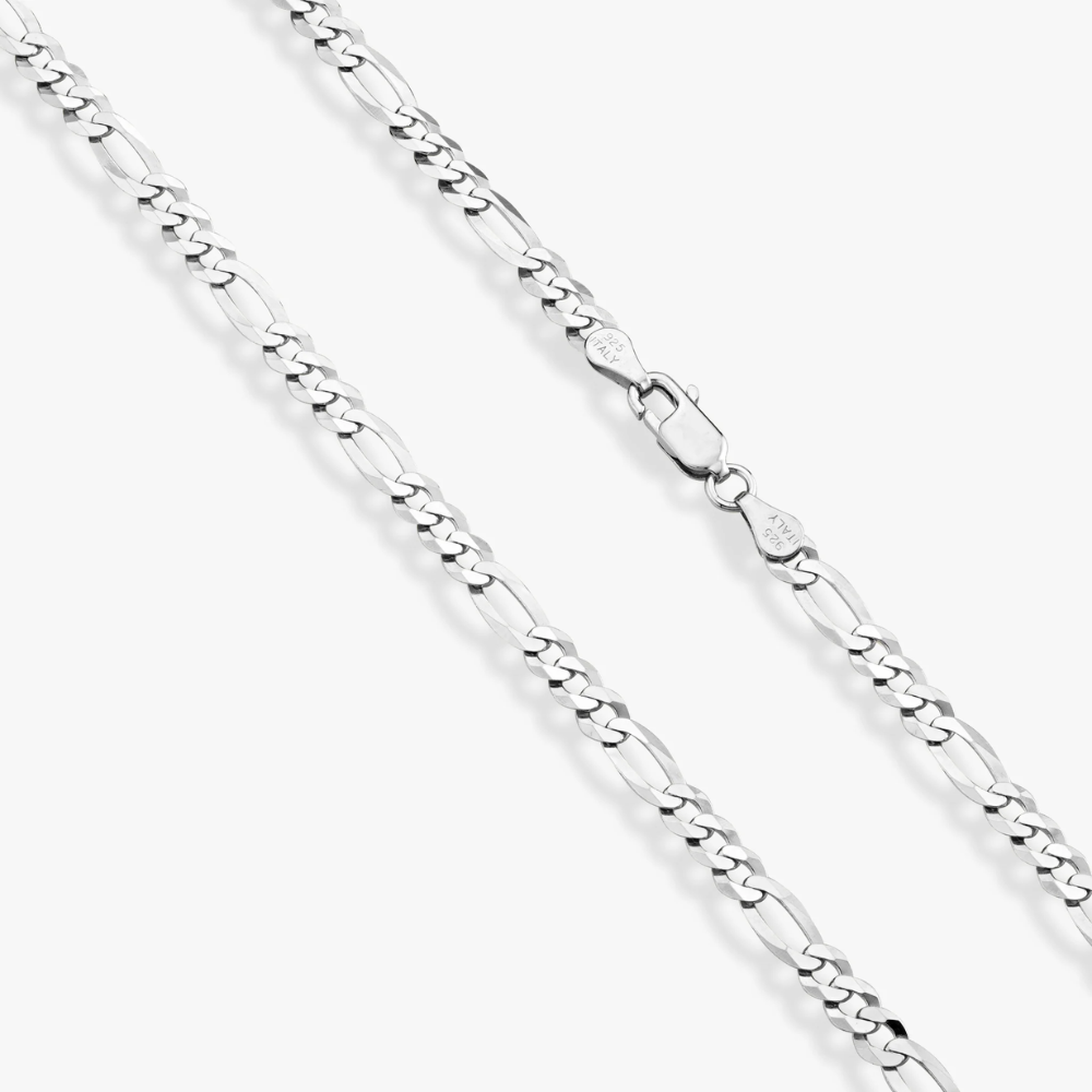 Elevate your everyday style with this bold yet refined 5mm Figaro chain crafted from solid 925 sterling silver and made in Italy. The flat, diamond-cut beveled links deliver a striking shine and reflectivity, setting this classic chain apart from standard styles. Strong, durable, and substantial without being overly bulky, it’s designed for long-lasting comfort and wearability. Whether worn solo for a sleek, polished look or layered with a favorite pendant or charm, this versatile chain is the perfect finishing touch for any outfit—casual or formal.