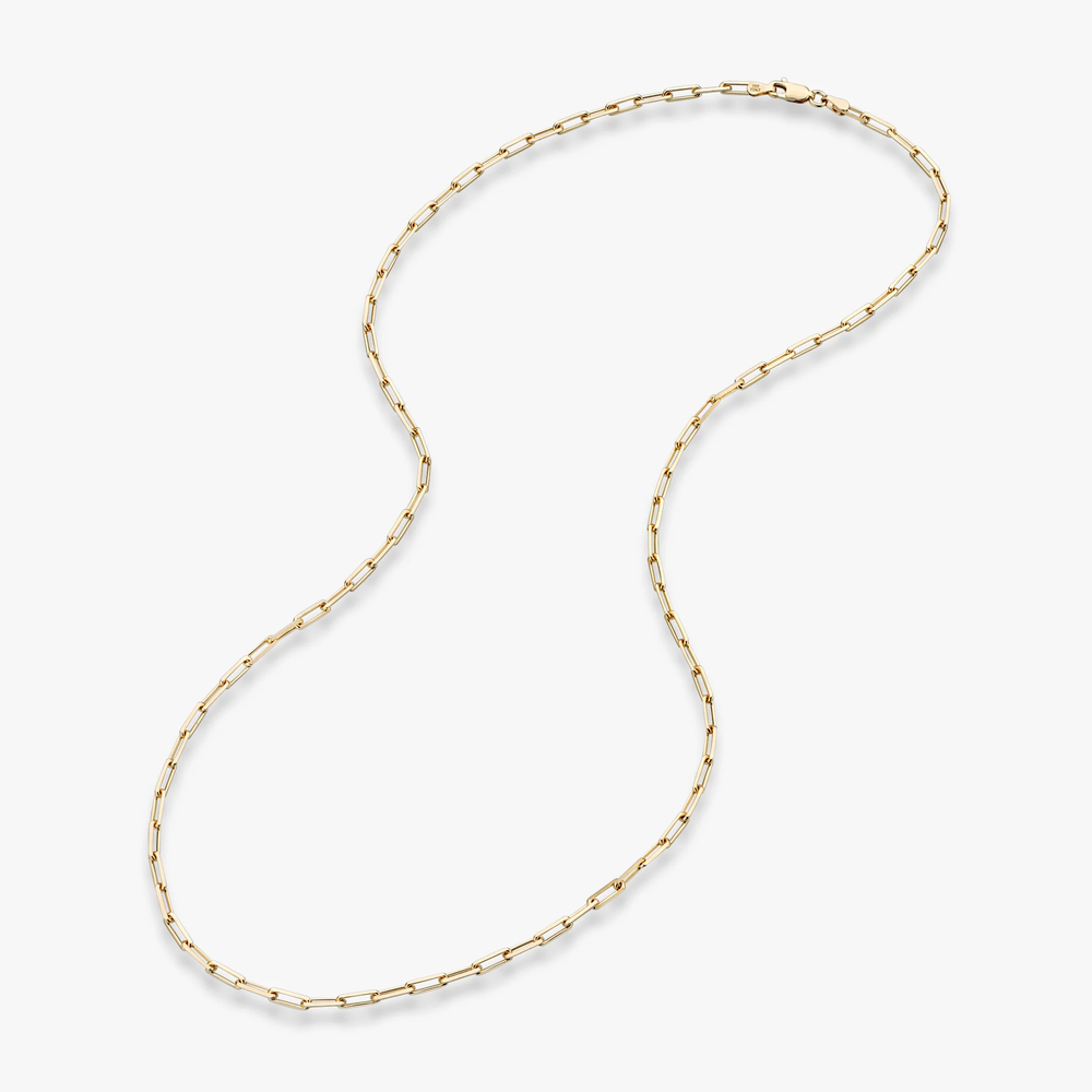 Refined with a modern edge. This 3mm paperclip chain is crafted in Italy from 18k gold over solid 925 sterling silver. The diamond-cut rectangular links catch the light from every angle, offering extra brilliance compared to standard paperclip styles. Bold yet simple, it’s designed to elevate both casual and formal outfits. Whether worn solo, paired with your favorite pendant, or layered with other chains, this timeless piece is an essential in any jewelry collection—comfortable enough for all-day wear, and versatile enough for every occasion.