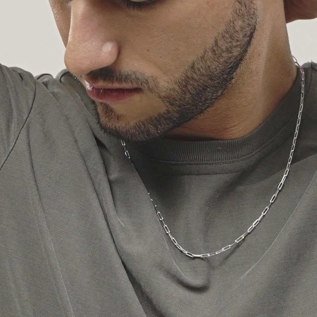Elevate your everyday style with this sleek 925 sterling silver paperclip chain. Featuring diamond-cut rectangular links, this 2.5mm wide necklace shines brighter than standard paperclip chains, catching light from every angle. Bold yet minimal, it’s the perfect accessory for both casual and formal outfits. Wear it solo for a clean, modern look, pair it with your favorite pendant for a personalized touch, or layer it with other chains for on-trend style. Designed for all-day comfort, this timeless piece is a must-have in your jewelry collection.