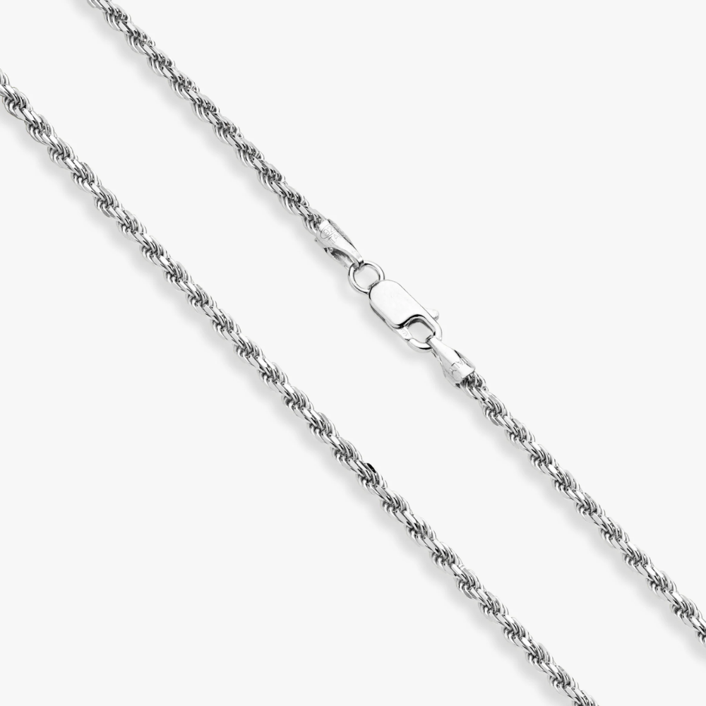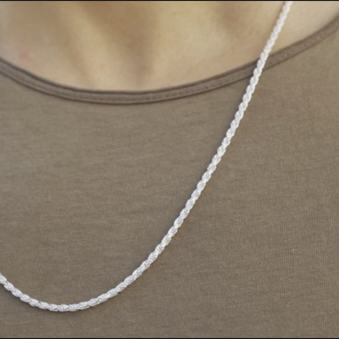 A true everyday essential with timeless appeal. This Italian-made rope chain is crafted from solid 925 sterling silver and features a 3mm twisted, diamond-cut design that catches the light with every move. It's perfect balance of thickness and flexibility makes it strong, durable, and comfortable to wear—never too bulky, never too delicate. Whether worn solo for subtle sophistication, paired with a pendant for a personal touch, or layered with other chains for a modern look, it fits seamlessly into any wardrobe.