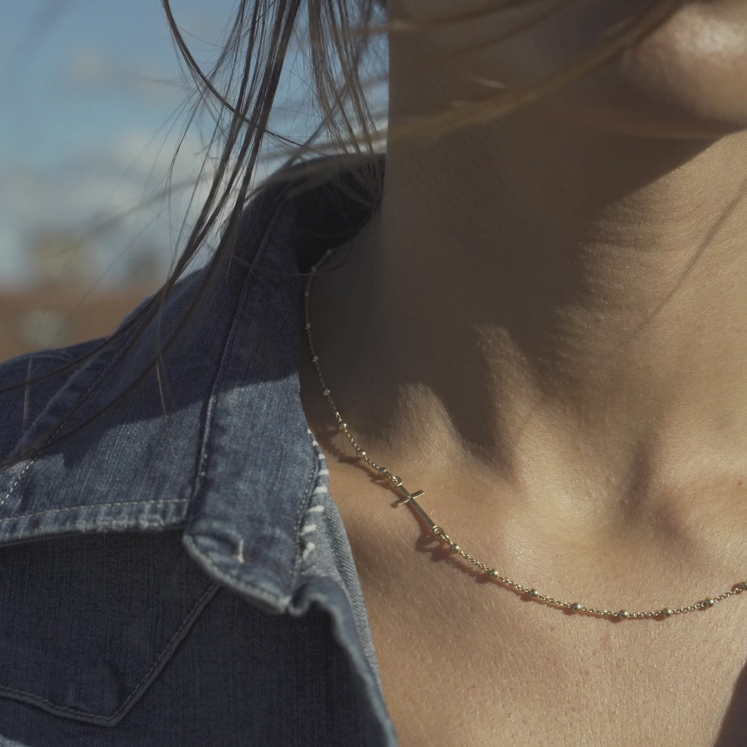 Rosary Sideways Cross Necklace in 18K Gold Over Sterling Silver
