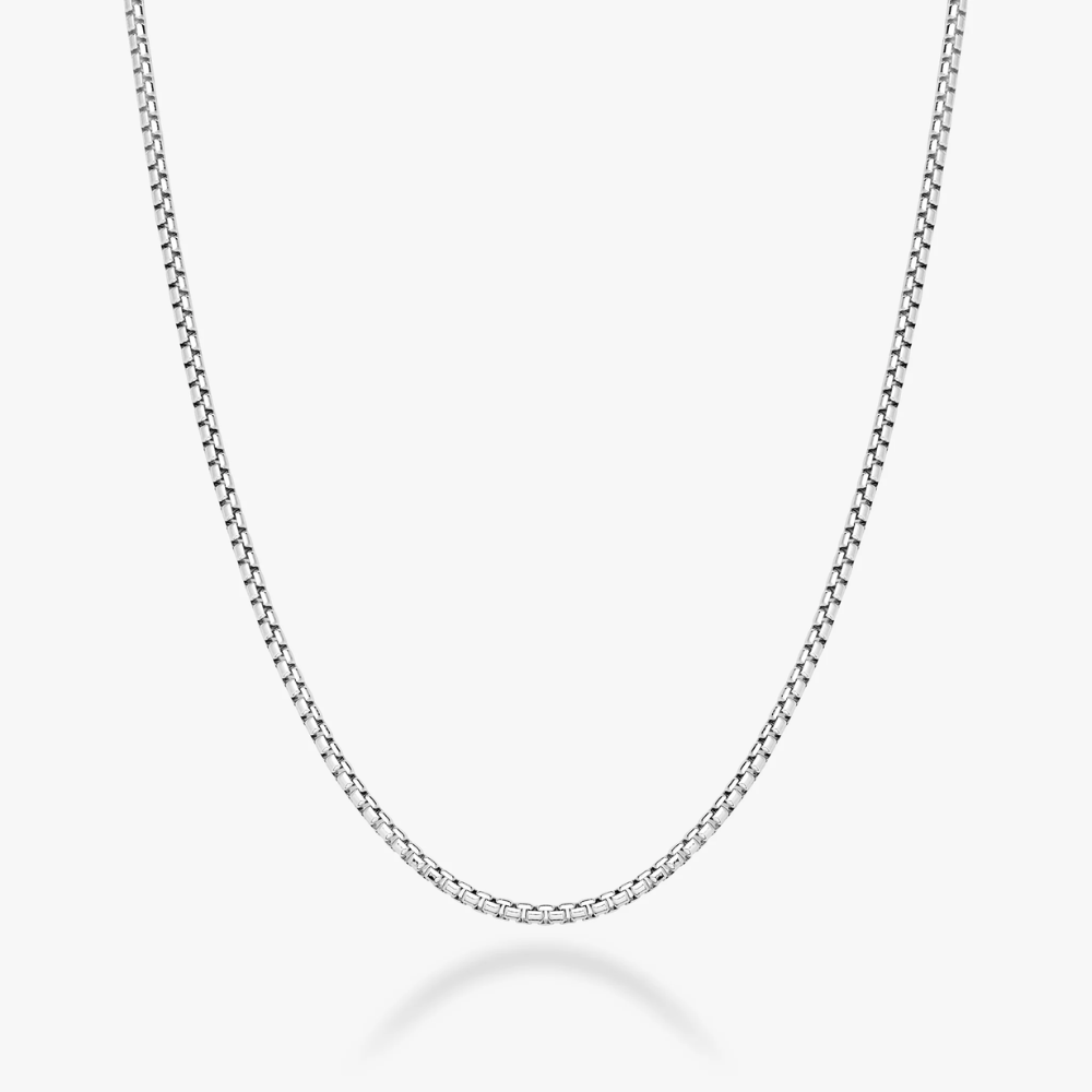 Round Box Chain Necklace in Sterling Silver, 2mm