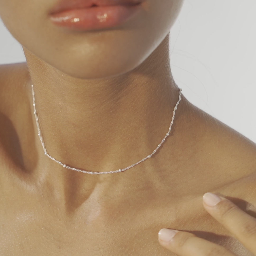 Singapore Bead Adjustable Choker Necklace in Sterling Silver