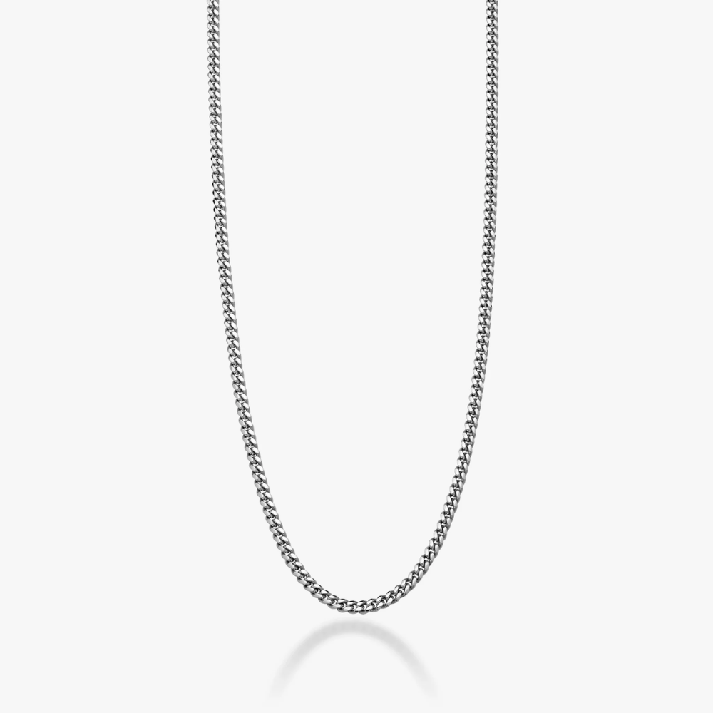 Thick Cuban Link Chain Necklace in Rhodium Plated Sterling Silver, 3.2mm